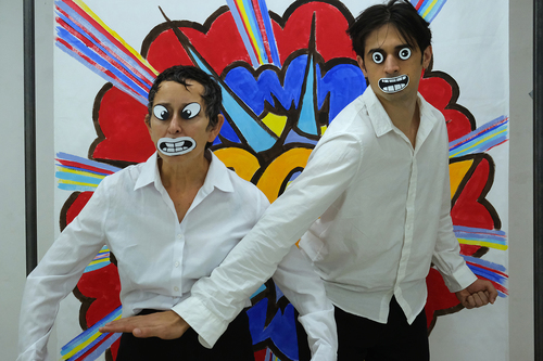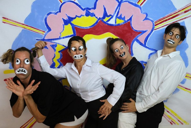 We are cartoons in an animated series: we have no feelings, no bodies, no thoughts. We trip each other up, we fight, we laugh mechanically. We kill one another and come back to life, again and again. We are the absurdly violent heroes of the short stories of Russian author Daniil Kharms, who lived through the gloom of the Stalinist 1930s. We are the burlesque clowns of American cinema in the dark years of the Great Depression of the 1930s.