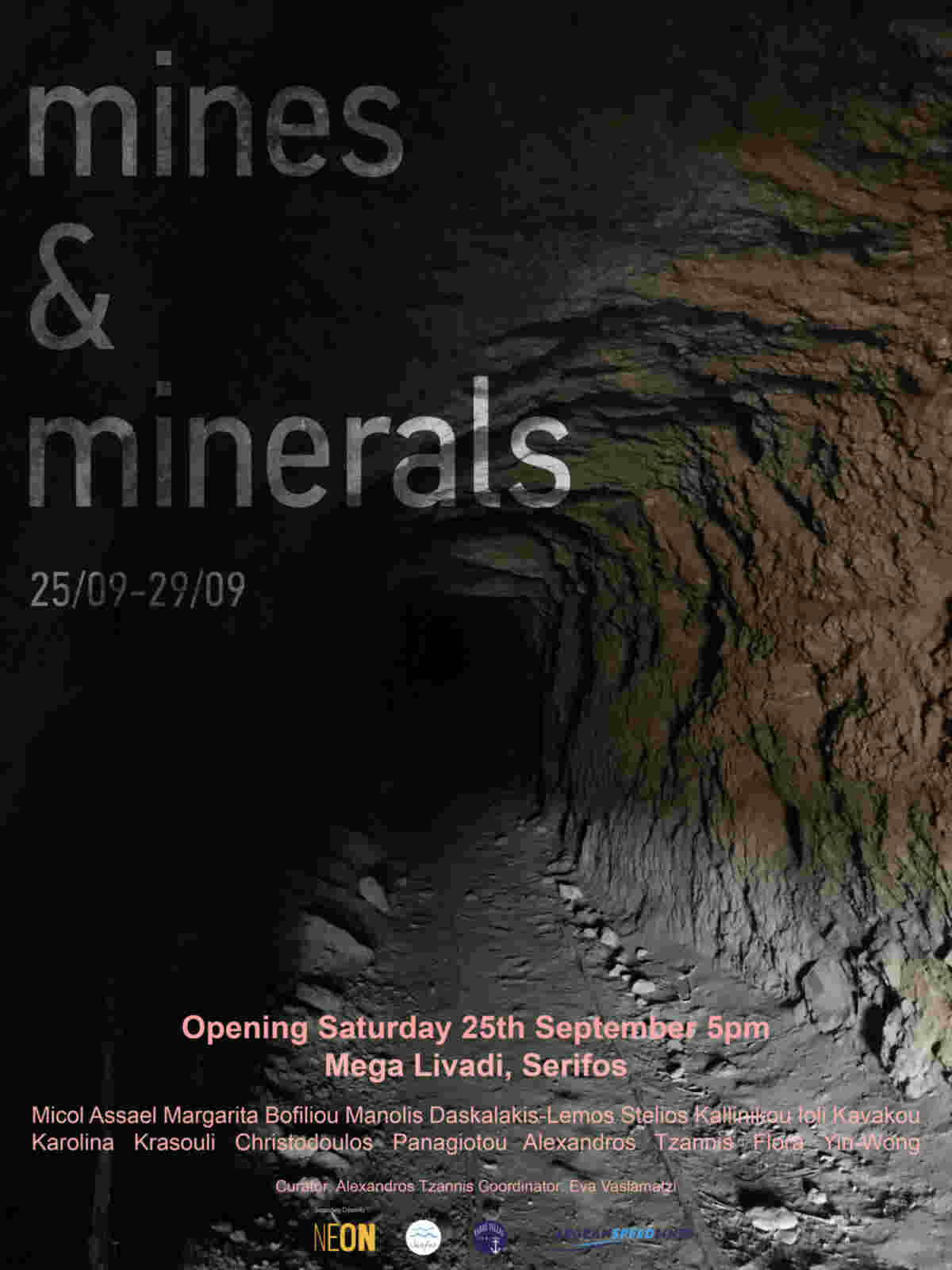 The group show Mines and Minerals is inspired by the unique landscape of Megalo Livadi bay in Serifos and highlights the dialectical relationships that develop between the natural