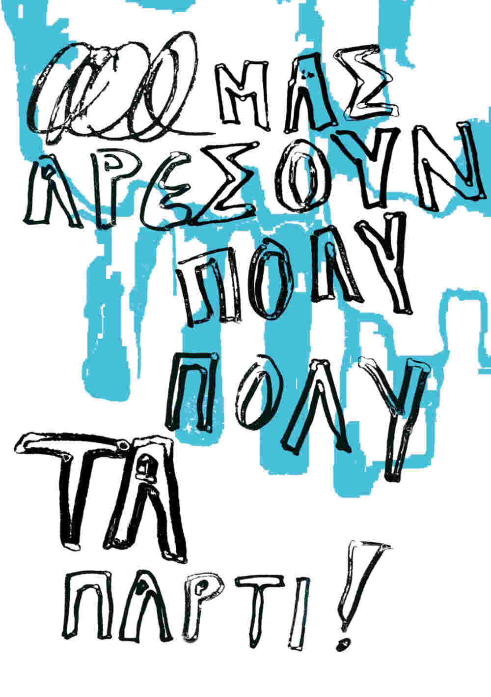 Η καλλιτεχνική έκδοση που εκδόθηκε το 2025, ΜΟΥ/ΜΑΣ ΑΡΕΣΟΥΝ ΠΟΛΥ ΠΟΛΥ ΤΑ ΠΑΡΤΙ, αποτελεί μέρος της ευρύτερης έρευνας του καλλιτέχνη και συγκεντρώνει προσωπικό αρχειακό υλικό και οικογενειακές μνήμες σε μορφή σημειώσεων, μαζί με δικά του σχέδια και κείμενα. Στην έκδοση αυτή, προσπαθεί να επανάσυναρμολογήσει τις ιστορίες που του αφηγούνταν η γιαγιά του, ενώ σκέφτεται το πάρτι ως έναν χώρο προβολής, προσδοκίας και απογοήτευσης.