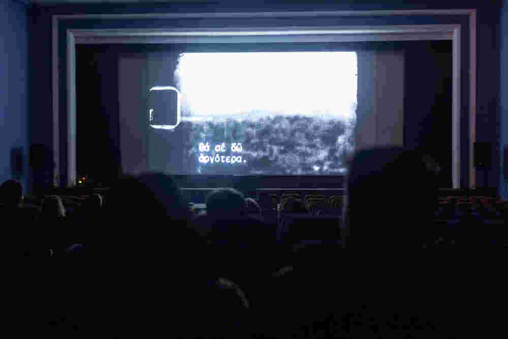 Από τις 2 Δεκεμβρίου, καθημερινά για δύο εβδομάδες, ένα διαφορετικό έργο εντάσσεται εμβόλιμα στον προγραμματισμένο κορμό προβολών κάθε αίθουσας, πριν από την κύρια ταινία της βραδιάς, ανάμεσα στα τρέιλερ που προηγούνται της προβολής, διαταράσσοντας διακριτικά τη συνήθη κινηματογραφική εμπειρία, ανοίγοντας χώρο για απρόσμενες συναντήσεις. Οι προβολές θα πραγματοποιηθούν στους κινηματογράφους Ατενέ, Διάνα, Μικρόκοσμος και Studio New Star Art Cinema.